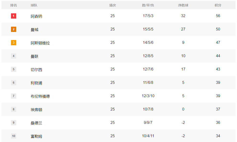 利物浦距离第五的切尔西目前已经有4分差距。维拉不仅被阿森纳和曼城甩开,更是距离身后的曼联也只有3分差距。